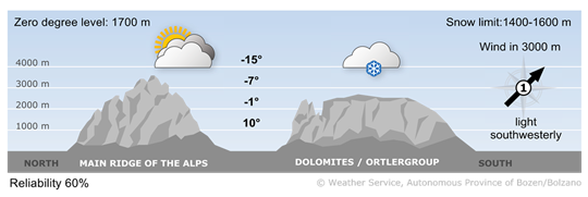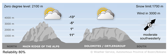 The sun will shine on the mountains of South Tyrol, with a few harmless cumulus clouds.