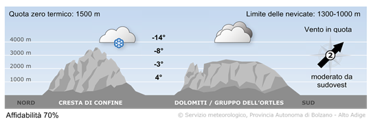 Correnti meridionali porteranno masse d'aria abbastanza umida verso le Alpi.